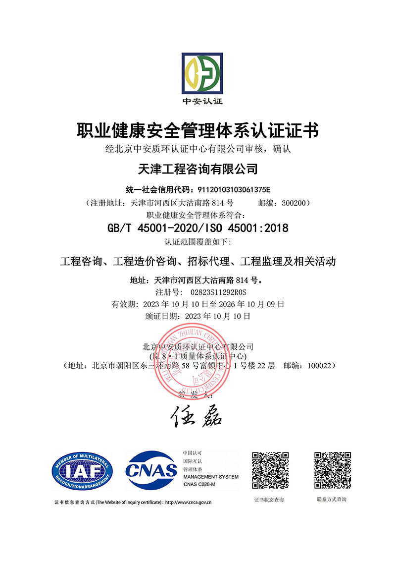 近日,天津咨詢所屬成套監(jiān)理公司重組分立工作和管理體系認證工作取得重大進展。經(jīng)住建部核準,成套監(jiān)理公司重組分立后,其市政和房建監(jiān)理甲級資質(zhì)平移至天津咨詢,為天津咨詢實體化進程補齊關鍵一環(huán)。同時,經(jīng)過專業(yè)認證機構(gòu)的嚴格審核,天津咨詢順利通過質(zhì)量管理體系(ISO9001:2015)、環(huán)境管理體系(ISO14001:2015)、職業(yè)健康安全管理體系(ISO45001:2018)認證,標志著公司混改以后在規(guī)范化、標準化、科學化的現(xiàn)代企業(yè)管理方面邁上了新臺階。