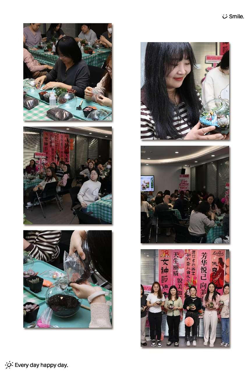 宏亞公司工會(huì)組織了“柔光萬丈,自在生長(zhǎng)”微景觀DIY主題活動(dòng),女職工們用靈巧的雙手將方寸玻璃瓶化作詩(shī)意天地,有人打造出“苔痕上階綠”的古典庭院,有人構(gòu)思出“小橋流水人家”的田園牧歌,活動(dòng)現(xiàn)場(chǎng)歡聲笑語不斷,大家在綠意盎然的創(chuàng)意世界中感受春日美好,共度溫馨時(shí)光。