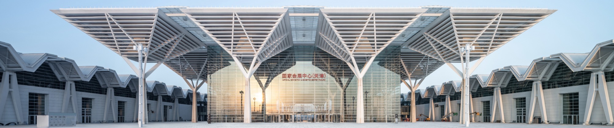 國(guó)家會(huì)展中心(天津)體量龐大、造型規(guī)整,集展覽、會(huì)議、商業(yè)、辦公、酒店功能于一體??偨ㄖ娣e約134萬(wàn)平米,其中室內(nèi)展覽面積約40萬(wàn)平米, 室外展覽面積約15萬(wàn)平米,為中國(guó)展覽面積最大、使用體驗(yàn)最佳的會(huì)展綜合體。項(xiàng)目分兩期建設(shè),一期工程總建筑面積約80萬(wàn)平米,室內(nèi)展覽面積約20萬(wàn)平米,總停車位數(shù)5000余個(gè)。
