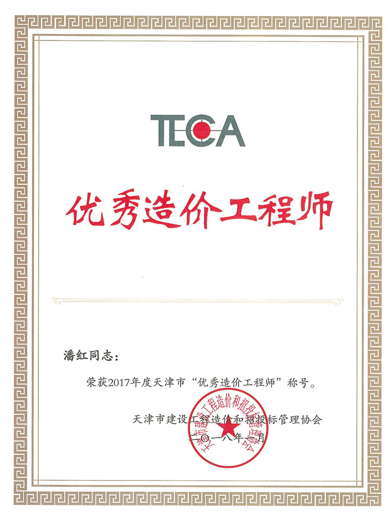 2017年度優(yōu)秀造價師潘紅