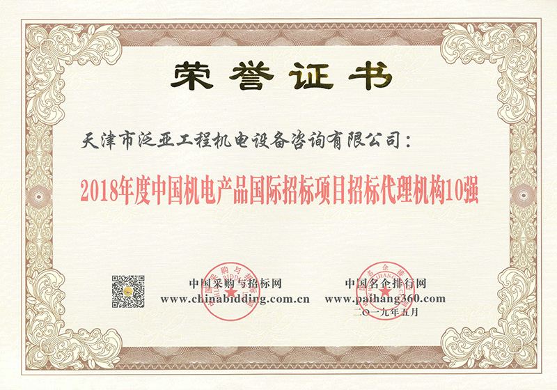 2018機(jī)電招標(biāo)10強(qiáng)