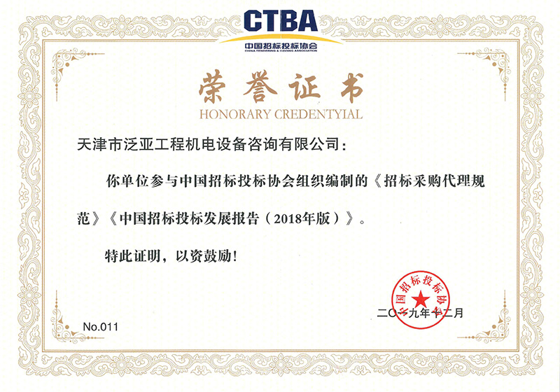 招標(biāo)采購(gòu)代理規(guī)范編制榮譽(yù)證明