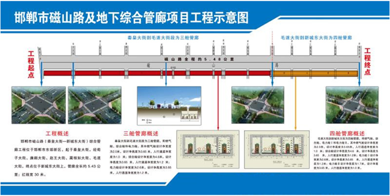邯鄲管廊項目 更新時間:2021-09-14 點擊:1516 所屬欄目:外埠業(yè)務 邯鄲市磁山路及地下綜合管廊(秦皇大街-新城東大街)工程,邯鄲市磁山路位于邯鄲市東部地區(qū),起于秦皇大街,經(jīng)荀子大街、廉頗大街、趙王大街、藺相如大街、毛遂大街,終點位于新城東大街上,路線全長約5.48公里。投資額6.8億元 服務內(nèi)容 監(jiān)理