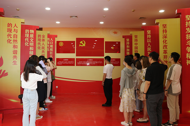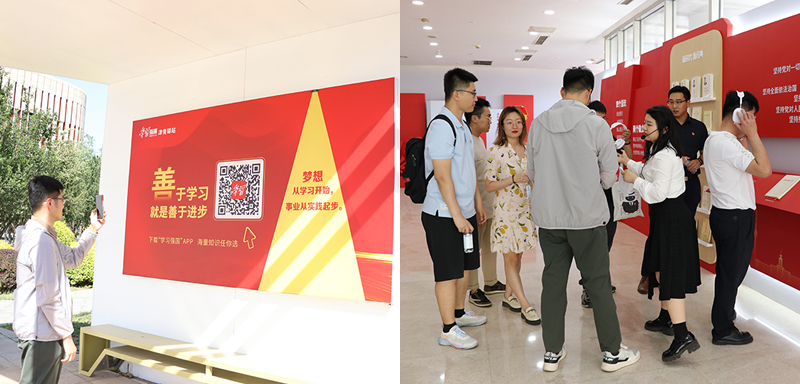 在天津團市委宣傳部有關(guān)領(lǐng)導(dǎo)的帶領(lǐng)下,團員青年們在室內(nèi)體驗區(qū)和室外體驗區(qū)沉浸式學(xué)習互動,實現(xiàn)了從“云端”學(xué)習到線下體驗的延伸,參觀了學(xué)習展示、領(lǐng)學(xué)互動、“紅色家書”互動墻、“中國式現(xiàn)代化”隧道、青年打卡以及戶外學(xué)習園地等展區(qū),體驗現(xiàn)代科技與“讀原著、學(xué)原文、悟原理”有機結(jié)合的多元化學(xué)習形態(tài)。