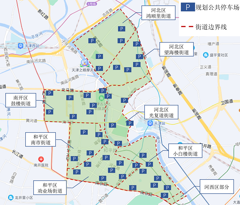 天津市中心城區(qū)核心區(qū)綠色交通改善工程及規(guī)劃停車場(chǎng)點(diǎn)位圖