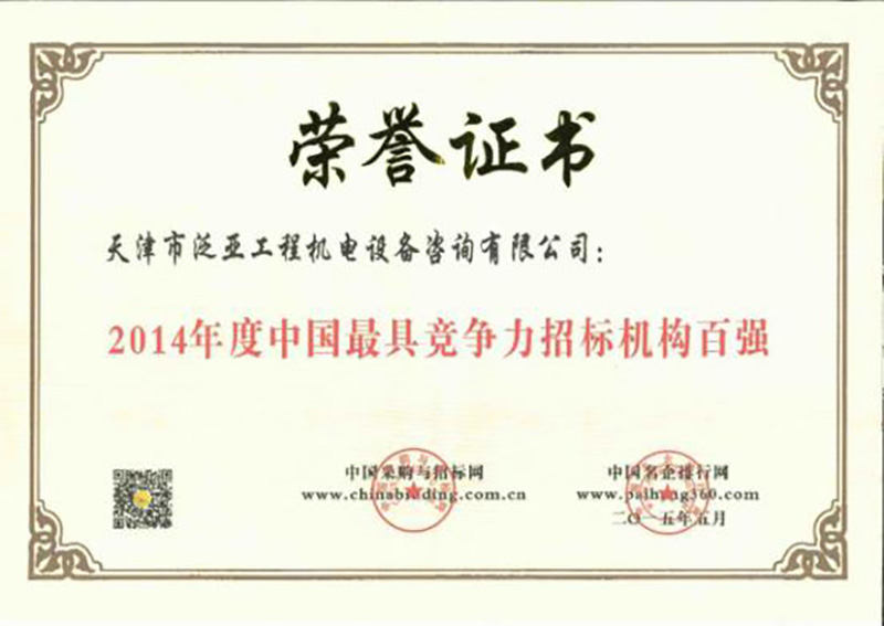 2014年度中國(guó)最具競(jìng)爭(zhēng)力招標(biāo)機(jī)構(gòu)百?gòu)?qiáng) 更新時(shí)間:2021-09-23 點(diǎn)擊:1315 所屬欄目:資質(zhì)榮譽(yù)