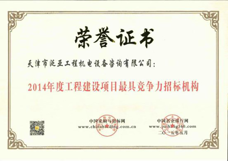 2014年度工程建設(shè)項(xiàng)目最具競(jìng)爭(zhēng)力招標(biāo)機(jī)構(gòu) 更新時(shí)間:2021-09-23 點(diǎn)擊:1279 所屬欄目:資質(zhì)榮譽(yù)