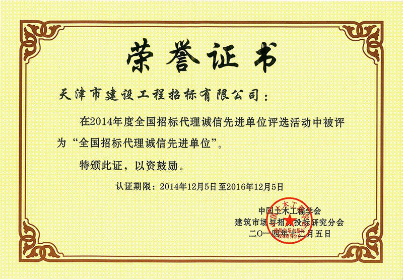 2014年全國招標(biāo)代理誠信先進(jìn)單位