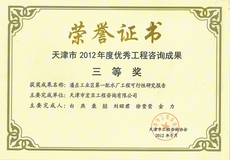 優(yōu)秀咨詢成果三等獎(jiǎng)(2012)