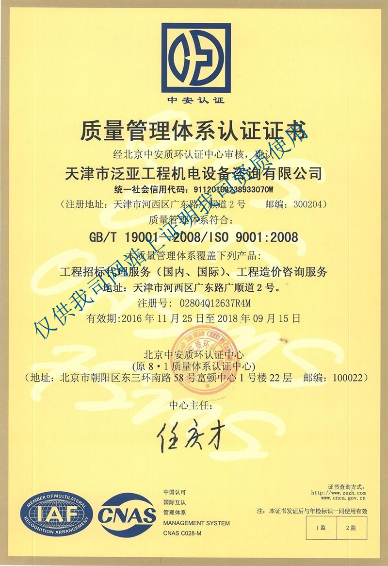 招標(biāo)、造價質(zhì)量體系認(rèn)證